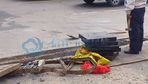 (信宜新闻网/讯)近日,有网友报料称:市迎宾路地税局(体育中心广场)路口的下水道盖被压烂,给来往车辆、纳税人和到体育中心锻炼的老人、儿童造成极大危险,已有多人及车辆中招!消息一出,得到有关负责人的重视,于昨天下午施工更换新的沙井盖。以后住在附近的市民又能放心出行了。