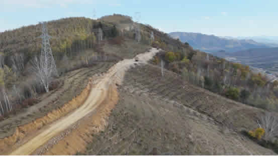 按照国家标准,森林防火道的宽度通常在3-6米,既能满足防火巡查、物资运输的需求,又能最大限度减少对森林植被的破坏。但围场县棋盘山镇的“防火道”却完全突破了合理界限:项目先期按6米建设,随后便以“升级改造”为由,擅自拓宽至10米,远超生态承载与实际功能需求。当地村民无奈表示:“这哪是防火道?分明是给风电项目修的‘运输路’!”大型机械开进山林时,成片的树木被连根砍伐,原本茂密的植被变得千疮百孔,裸露的土地在绿色林海中格外刺眼,就像一道道暗灰色的伤疤,丑陋地刻在塞罕坝周边的生态屏障上。